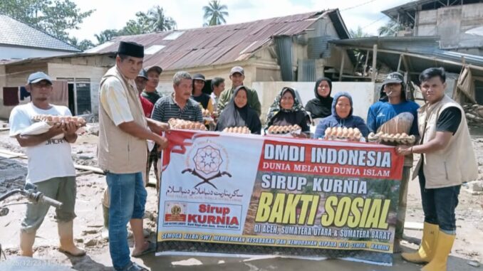 ACEH TAMIANG – Dunia Melayu Dunia Islam (DMDI) Indonesia dan perusahaan minuman Sirup Kurnia Peduli berkolaborasi menyalurkan bantuan kemanusiaan terhadap masyarakat terdampak banjir bandang dan longsor yang ada di Aceh dan Sumatera Utara.