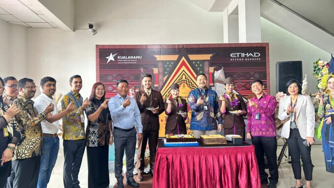 BERINGIN – Akses penerbangan internasional dari Bandara Internasional Kualanamu, Kecamatan Beringin, Deli Serdang, kini semakin terbuka. Maskapai Etihad Airways resmi membuka penerbangan langsung rute Kualanamu–Abu Dhabi (KNO–AUH) yang ditandai dengan Inaugural Flight Ceremony di Bandara Kualanamu, Jumat (3/10/2025).