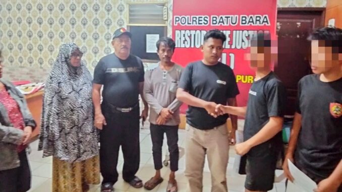 BATU BARA, KlikTodayNews.com – Dua anak laki-laki di bawah umur, RPSS (16 tahun) dan RS (15 tahun) warga Kecamatan Air Putih, Kabupaten Batu Bara, yang melakukan pencurian dua unit handphone di toko milik Rahayu (24) di Dusun V Desa Simpang Gambus, Kecamatan Lima Puluh, akhirnya tidak menjalani proses hukum setelah mendapatkan maaf dari korban.23/01/2026.