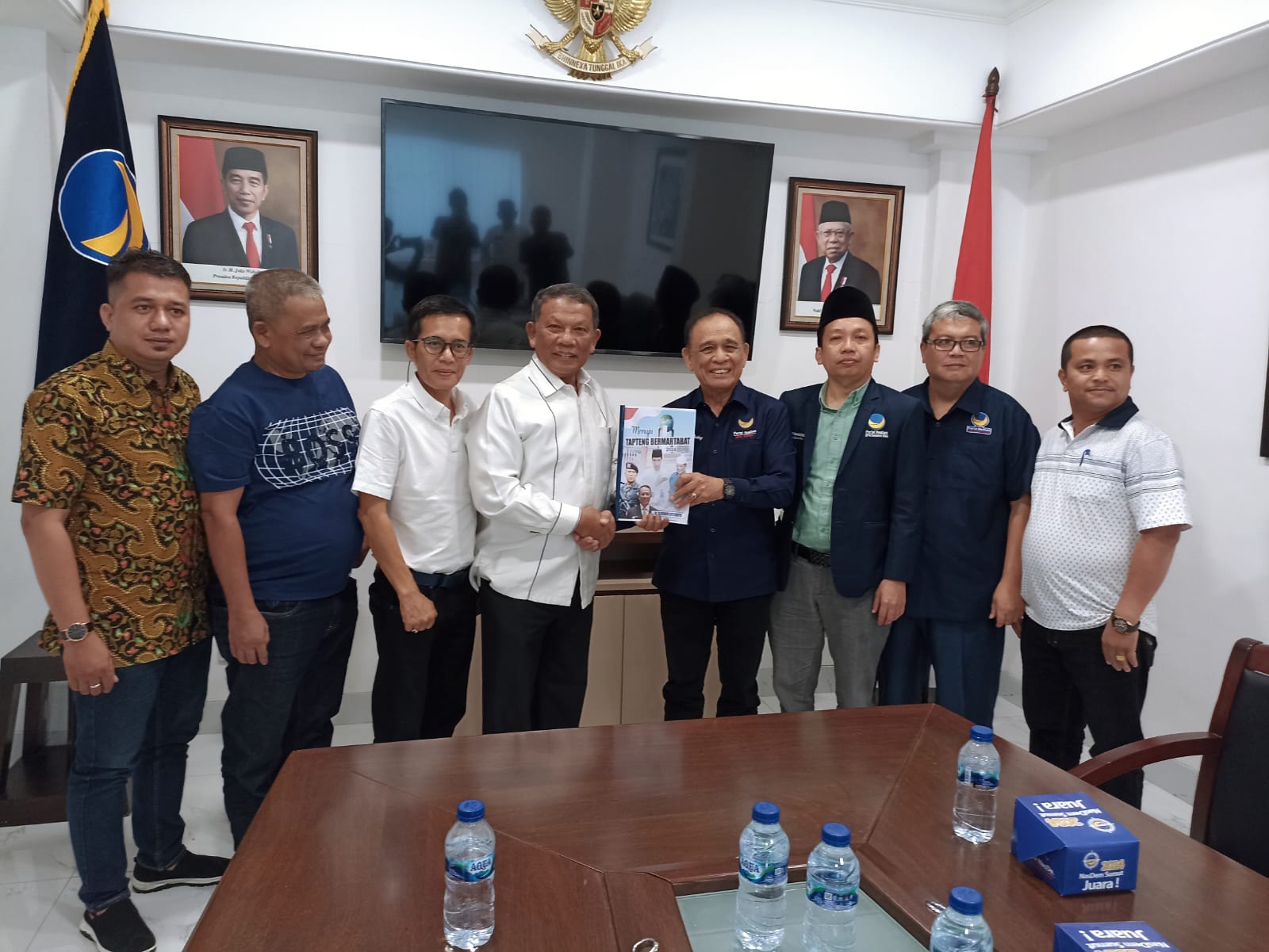 Keterangan fhoto: Bacalon Bupati Tapteng, Albiner Sitompul di Sekretariat DPW NasDem Sumut.
