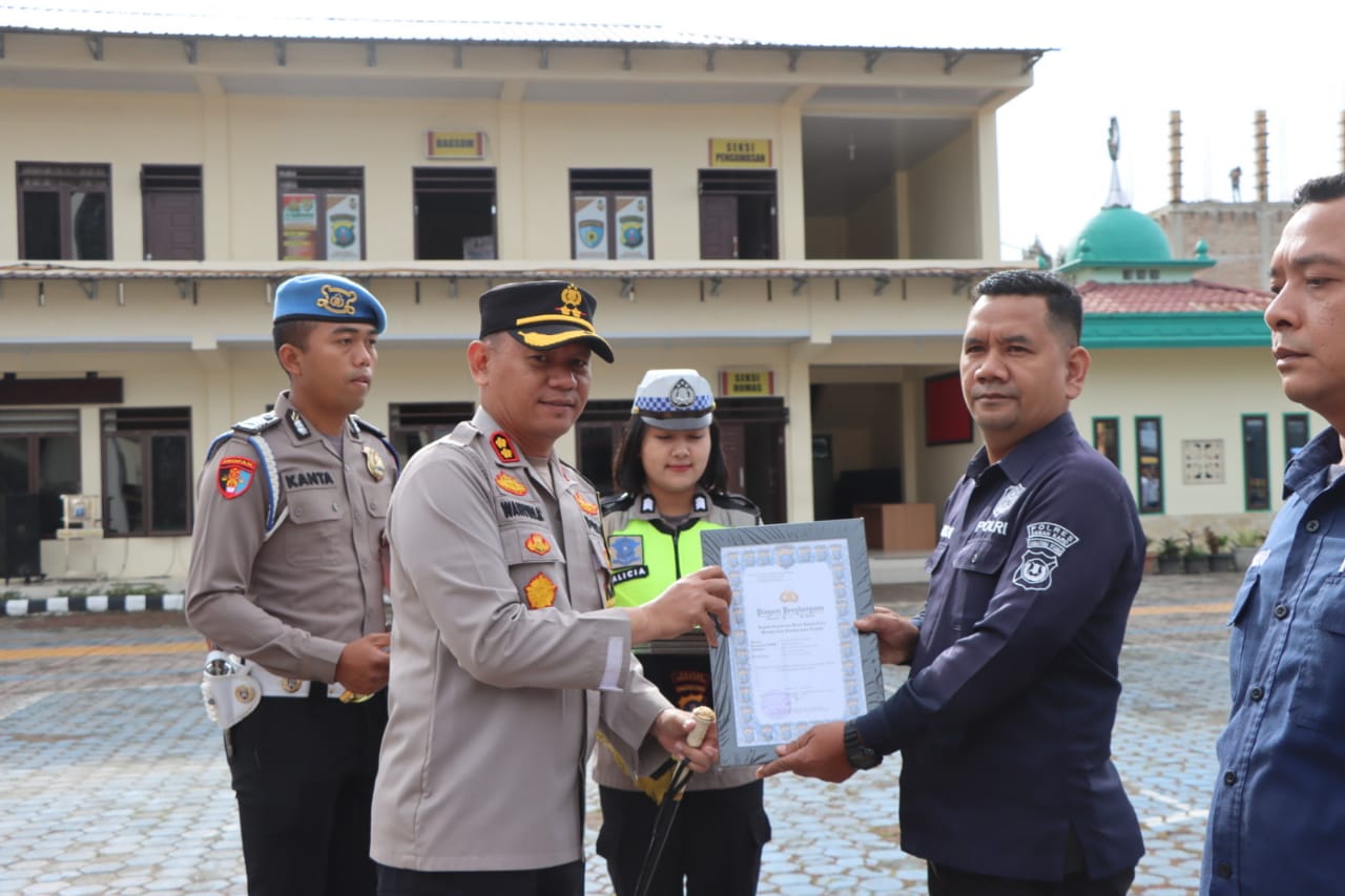 Kapolres Tanah Karo AKBP Wahyudi Rahman, S.H, S.I.K, M.M, memberikan reward kepada personel Sihumas atas predikat 3 Polres terbaik peringkat tiga sejajaran Polda Sumut
