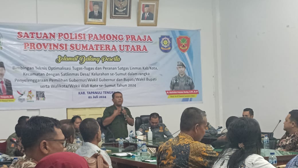 Keterangan fhoto: Koordinor Devisi Tekhnis Penyelengaraan KPU Tapteng, Helman Tambunan sampaikan pemaparan.