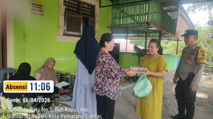 SIANTAR– Polsek Siantar Martoba Polres Pematangsiantar melalui Bhabinkamtibmas Kelurahan Bah Kapul, BRIPKA Sunandar, melaksanakan pendampingan terhadap kader Posyandu dalam pendistribusian Makanan Bergizi Gratis (MBG) di Jalan Sibatu Batu, Kelurahan Bah Kapul, Kecamatan Siantar Sitalasari, Kota Pematangsiantar, Senin (6/4/2026) sekitar pukul 10.30 WIB.