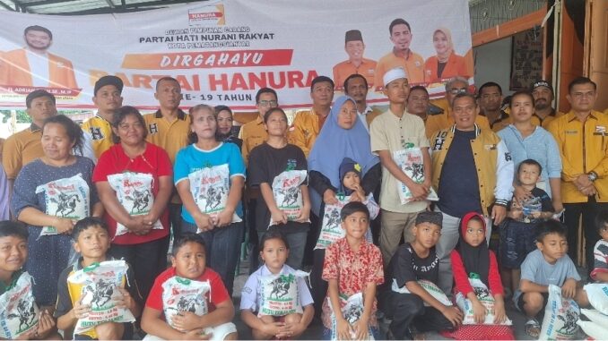 PEMATANGSIANTAR– Dalam rangka memperingati Hari Ulang Tahun (HUT) ke-19 Partai Hati Nurani Rakyat (HANURA), Dewan Pimpinan Cabang (DPC) Partai Hanura Kota Pematangsiantar menggelar kegiatan tali asih kepada masyarakat, Rabu (14/1/2025).