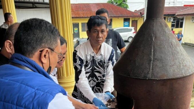 Kegiatan turut disaksikan tersangka GR dan Penasehat Hukumnya, Roy Yantho Simangunsong, SH, sebagai bagian dari prosedur pemusnahan barang bukti.