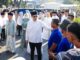 Jamaah membludak hingga pelataran jalan. Mereka datang dari berbagai kecamatan yang ada di Kota Pematangsiantar.