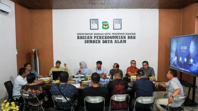 Rapat persiapan penempatan kembali pedagang ke lokasi eks Gedung IV Pasar Horas dilaksanakan di Ruang Bagian Perekonomian dan Sumber Daya Alam (SDA) Setdako Pematangsiantar, Jumat (05/12/2025) sore.
