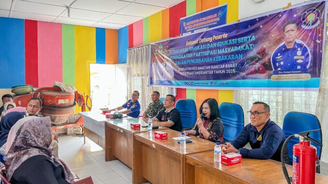 PEMATANGSIANTAR – Wali Kota Pematangsiantar Wesly Silalahi SH MKn diwakili Staf Ahli Dra Happy Oikumenis Daely membuka kegiatan Sosialisasi, Edukasi, Simulasi, serta Peningkatan Partisipasi Masyarakat dalam Pencegahan Kebakaran di Kecamatan Siantar Barat, tepatnya di Kelurahan Sipinggol-pinggol, Jalan Enggang, Jumat (12/09/2025).