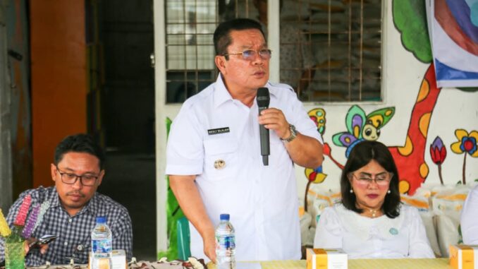 SIANTAR– Wali Kota Pematangsiantar Wesly Silalahi SH MKn didampingi Ketua TP PKK Ny Liswati Wesly Silalahi me-Launching Bantuan Pangan Alokasi Februari-Maret 2026. Lanching dilaksanakan di Kantor Lurah Parhorasan Nauli Kecamatan Siantar Marihat, Jalan Mangga Pematangsiantar, Rabu (08/04/2026) pagi.