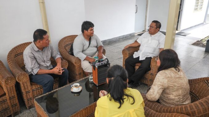 SIANTAR– Wali Kota Pematangsiantar Wesly Silalahi SH MKn mengundang pria pengamen tuna netra Heri Sandarman Hulu, datang ke rumah dinas wali kota, Jalan MH Sitorus Kelurahan Teladan Kecamatan Siantar Barat, Minggu (15/06/2025). Heri merupakan pengamen yang ditertibkan petugas Dinas Sosial Pemberdayaan Perempuan dan Perlindungan Anak (Dinsos P3A), Satpol PP, dan Polres Pematangsiantar beberapa hari lalu.