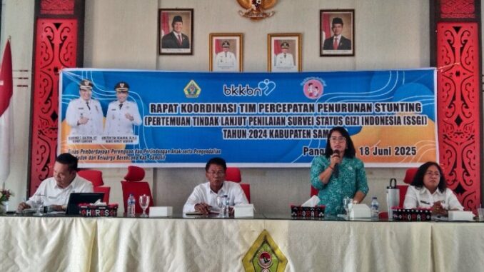 SAMOSIR – Pemerintah Kabupaten Samosir menggelar Rapat Koordinasi (Rakor) tim percepatan penurunan stunting guna menindaklanjuti penilaian Survey Status Gizi Indonesia (SSGI) 2024. Rakor dibuka secara resmi oleh Asisten I Tunggul Sinaga di Aula Kantor Bupati Samosir.