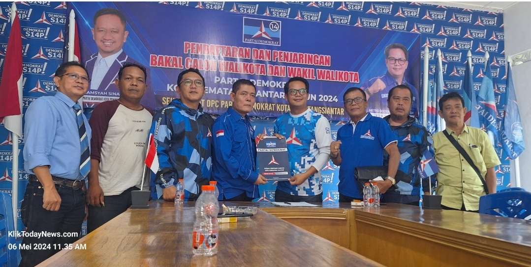 Pardomuan Nauli Simanjuntak ambil Formulir Pendaftaran ke Partai Demokrat kota Pematangsiantar, Senin (6/5/2024).