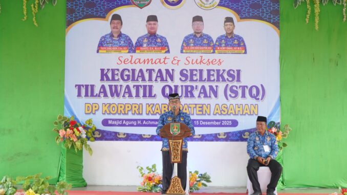 Kisaran (15/12/2025) – Dewan Pengurus Korps Pegawai Republik Indonesia (DPK Korpri) Kabupaten Asahan menggelar Seleksi Tilawatil Qur’an (STQ) ke-2 Tahun 2025 tingkat DPK Korpri Kabupaten Asahan di Gedung Tahfidz Masjid Agung H. Achmad Bakrie, Senin (15/12/2025). Kegiatan yang mengusung tema “Meningkatkan Iman, Ilmu, dan Akhlakul Karimah” ini merupakan bagian dari sinergi Korpri dengan Pemerintah Kabupaten Asahan dalam pembinaan Aparatur Sipil Negara (ASN) yang religius dan berkarakter, serta dihadiri Wakil Bupati Asahan Rianto, S.H., M.AP., selaku Pembina Korpri Kabupaten Asahan, Asisten Administrasi Umum Setdakab Asahan, Ketua DPK Korpri Kabupaten Asahan beserta pengurus, MUI Kabupaten Asahan, Dewan Hakim, para peserta STQ, serta tamu undangan lainnya.
