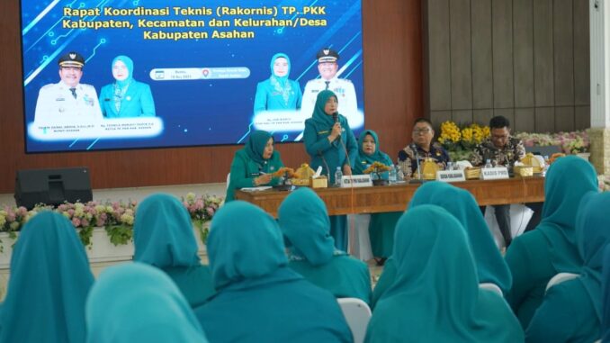 Asahan – Kamis, 18 Desember 2025. Tim Penggerak Pemberdayaan dan Kesejahteraan Keluarga (TP PKK) Kabupaten Asahan menggelar Rapat Koordinasi Teknis (Rakornis) tingkat Kabupaten, Kecamatan, serta Kelurahan/Desa di Pendopo Rumah Dinas Bupati Asahan. Kegiatan ini dilaksanakan sebagai upaya memperkuat koordinasi dan konsolidasi program PKK di seluruh tingkatan.