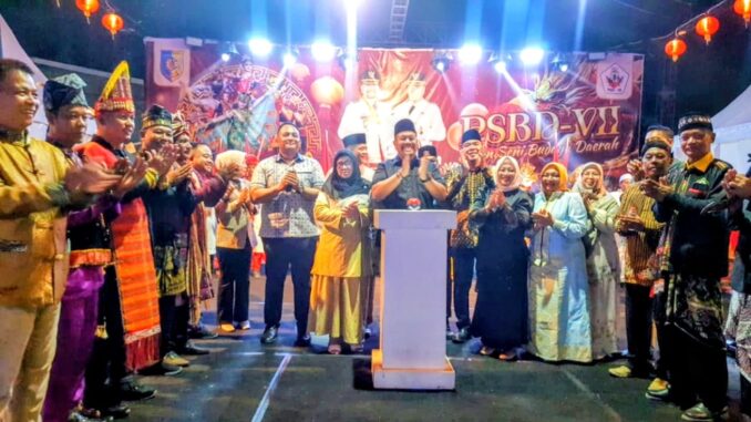 Batu Bara,kliktodaynews.com– Prosesi pembukaan Pekan Seni Budaya Daerah (PSBD) ke VII Kabupaten Batu Bara disambut meriah seribuan warga yang memadati lapangan bola kaki Indra Sakti Kecamatan Air Putih Kabupaten Batu Bara, Jumat (31/10/2025) malam.