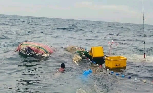 Begitu boat mulai tenggelam, sebuah boat nelayan lainnya yang berada tidak jauh dari lokasi kejadian terlihat segera melakukan pertolongan.