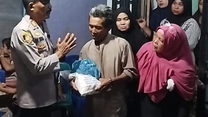 Dalam kesempatan tersebut, pihak kepolisian turut menyerahkan bantuan berupa sembako sebagai bentuk kepedulian terhadap keluarga yang tengah berduka.
