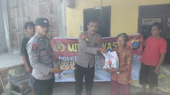 Tak hanya kepada internal, program ini juga menyentuh masyarakat. Personel Polsek Medang Deras turut menyalurkan sembako kepada Ibu Montaria br Saragi, seorang ibu rumah tangga yang tinggal di Kelurahan Pangkalan Dodek, Kecamatan Medang Deras.