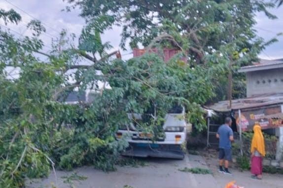 Akibat benturan dengan pohon batang yang condong ke jalan, bagian kepala truk mengalami penyok parah dan bahkan tertimpa dahan pohon yang tumbang akibat benturan. Beruntungnya, tidak ada korban jiwa dalam kecelakaan tersebut.