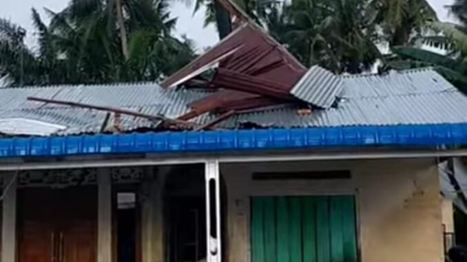Batu Bara, Kliktodaynews.com – Hujan deras disertai angin puting beliung menyebabkan kerusakan pada sedikitnya tiga rumah warga di dua desa di Kecamatan Lima Puluh Pesisir, Kabupaten Batu Bara. Peristiwa ini terjadi pada Sabtu (22/11/2025) sekitar pukul 14.00 WIB.
