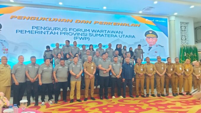 Medan – Gubernur Sumatera Utara (Sumut) Bobby Nasution secara resmi mengukuhkan Pengurus Forum Wartawan Pemerintah Provinsi (FWP) Sumut periode 2025–2028. Acara berlangsung di Aula Raja Inal Siregar, Kantor Gubernur Sumut, Selasa (4/11/2024).