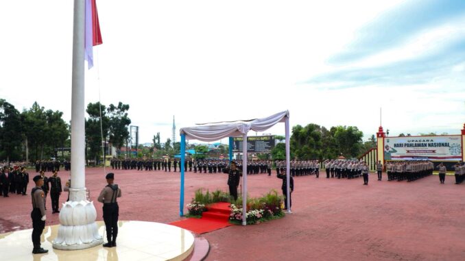“Hari ini, di bawah langit Indonesia yang merdeka, kita menundukkan kepala penuh hormat mengenang para pahlawan bangsa. Mereka bukan sekadar nama yang terukir di batu nisan, melainkan cahaya yang menerangi jalan kita hingga hari ini,” demikian isi amanat yang dibacakan Wakapolda.