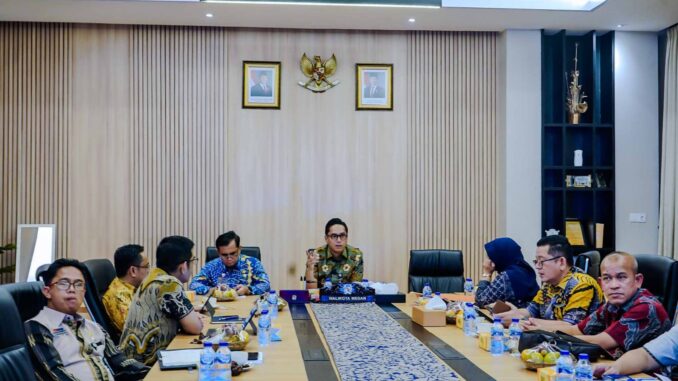 Medan– Wali Kota Medan Rico Tri Putra Bayu Waas mengikuti Rapat Koordinasi (Rakor) Percepatan Rehabilitasi dan Rekonstruksi Pascabencana di Wilayah Sumatra secara daring dari rumah dinasnya, Kamis (15/1/2026).