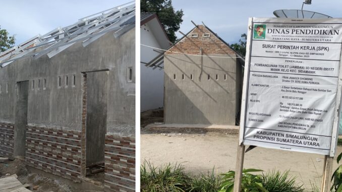Simalungun, Kliktodaynews.com – Proyek pembangunan toilet di SD Negeri 095177 Pagu senilai Rp148,9 juta yang berlokasi di Dusun Manik Rejo, Desa Bahal Gajah, Kecamatan Sidamanik, Kabupaten Simalungun, menjadi sorotan setelah belum rampung hingga masa kontrak berakhir.