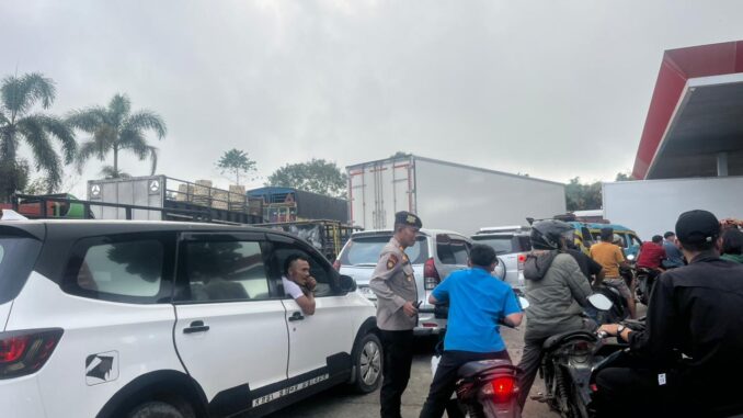 SIMALUNGUN – Antrean panjang kendaraan yang hendak mengisi bahan bakar minyak (BBM) di SPBU Raya berpotensi menimbulkan kemacetan parah. Namun berkat tindakan cepat Kepala Satuan Sabhara dan Lalu Lintas (Kasat Samapta) Polres Simalungun yang turun langsung, arus lalu lintas tetap lancar dengan penerapan sistem buka-tutup yang efektif.