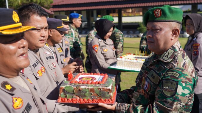 Usai pelaksanaan upacara, Kapenrem 022/PT bersama jajaran menerima kejutan dari Polres Pematangsiantar, Polres Simalungun, dan Brimob Pematangsiantar berupa kue ulang tahun sebagai bentuk ucapan selamat HUT TNI ke-80.