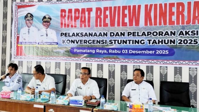 SIMALUNGUN – Pemerintah Kabupaten (Pemkab) Simalungun melalui Badan Perencanaan Pembangunan, Riset, dan Inovasi Daerah (Baperida) telah menyelenggarakan Review Kinerja Pelaksanaan dan Pelaporan Aksi Konvergensi Penurunan Stunting Tahun 2025, berlangsung di Kantor Baperida Kabupaten Simalungun, Pematang Raya, Sumatera Utara, pada Rabu (03/12/2025).