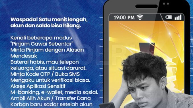 “Kami menerima laporan warga yang awalnya tidak curiga karena pelaku terlihat sopan atau mengaku butuh bantuan. Namun setelah HP dipinjam, akun langsung dibajak.