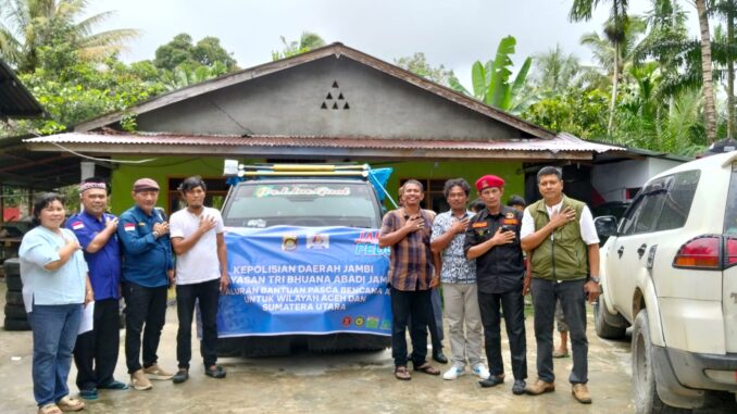 Bantuan tersebut merupakan kolaborasi antara Kapolda Jambi dan Yayasan PT Tri Bhuana Abadi. Penyaluran dilakukan langsung oleh Ketua Relawan Bob Hendra Helmy Rambe bersama Musliadi, M. Janus Hutagaol, Jayeng, Ijal, Miftahuddin, Serlina Panjaitan, Artono Malau, dan Jelispan Pane.