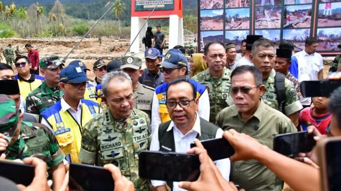 Tukka, Kliktodaynews.Com– Masinton Pasaribu selaku Bupati Tapanuli Tengah dampingi Menteri Koordinator Bidang Pembangunan Manusia dan Kebudayaan (Menko PMK) Prof. Dr. Pratikno dan Kepala Staf Umum (Kasum) TNI Letjen TNI Richard Taruli Horja Tampubolon pada Jumat 13 Februari 2026, meninjau Jembatan Gantung Perintis Garuda di Kelurahan Tukka Kecamatan Tukka Kabupaten Tapanuli Tengah, Provinsi Sumatera Utara.