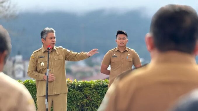 Wakil Bupati Tapanuli Utara, Dr. Deni P. Lumbantoruan, M.Eng, memimpin apel gabungan yang digelar di halaman Kantor Bupati Tapanuli Utara, Tarutung, pada Senin (30/03/2026).