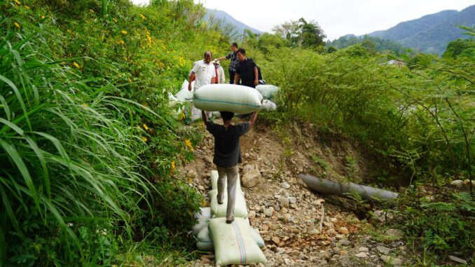 Toba – Sejumlah petani di Desa Partoruan Lumban Lobu, Kecamatan Bonatua Lunasi, Kabupaten Toba, terpaksa menyunggi (membawa di atas kepala) hasil panen padi sejauh hampir satu kilometer akibat akses jalan menuju persawahan mereka terputus dan tidak bisa dilalui kendaraan.