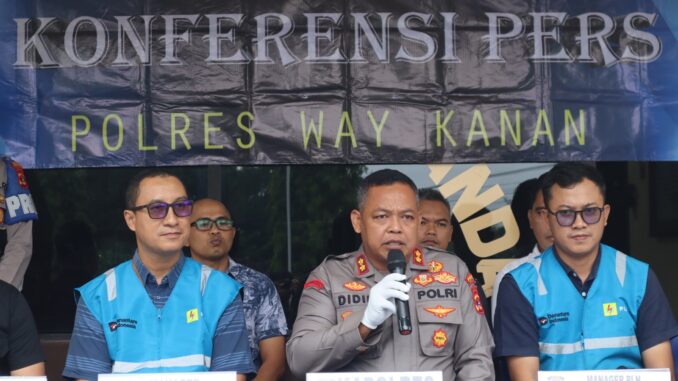 WAY KANAN – Polres Way Kanan berhasil mengungkap kasus pencurian kabel listrik milik PT PLN (Persero) dengan total kerugian ditaksir mencapai lebih dari Rp1,1 miliar.
