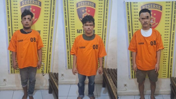 Tiga terduga pelaku yang diamankan masing-masing berinisial HSBB (31), warga Jalan DI Panjaitan Komplek Agape, Kelurahan Aek Nauli, Kecamatan Siantar Marihat; IA (26), warga Jalan Sadum Pondok Indah Gang Keluarga, Kelurahan Bantan, Kecamatan Siantar Barat; serta A (26), warga Jalan Singosari, Kelurahan Martoba, Kecamatan Siantar Utara, Kota Pematangsiantar. Ketiganya ditangkap pada Senin (6/4/2026) sore.