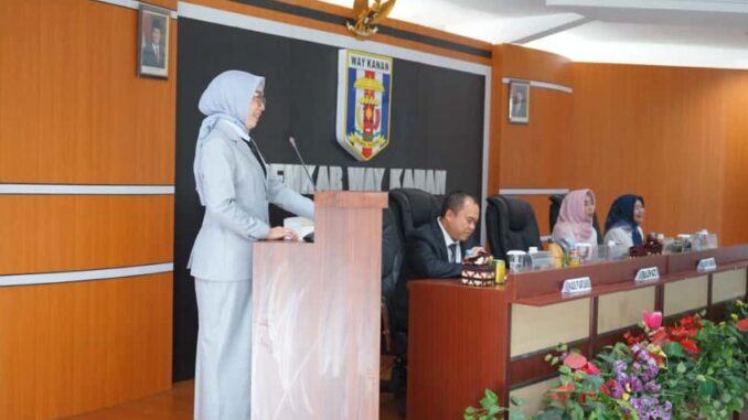Way Kanan – Bupati Way Kanan, Ayu Asalasiyah, S.Ked., menghadiri sekaligus membuka Kegiatan Pembinaan Program Pembangunan Keluarga, Kependudukan, dan Keluarga Berencana (Bangga Kencana), di Ruang Buway Pemuka Pengiran Tuha, Kamis (23/10/2025).