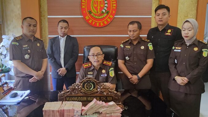 WAY KANAN– Kejaksaan Negeri (Kejari) Way Kanan kembali menerima uang titipan pengembalian kerugian negara sebesar Rp640.239.635 dari perkara dugaan tindak pidana korupsi Pembangunan Sistem Penyediaan Air Minum (SPAM) IKK Pakuan Ratu I Kabupaten Way Kanan Tahun Anggaran 2016, pada Satuan Kerja Pengembangan SPAM Provinsi Lampung. Penyerahan dilakukan pada Kamis (04/12/2025).