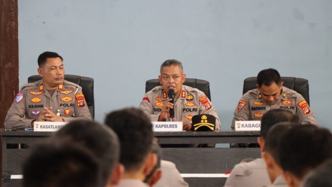 Untuk itu perlu di pedomani bersama, ini akan menjadi tugas berat dari personel yang tergabung dalam Pos Pengamanan jadi lakukan yang terbaik dalam pelaksanaan tugasnya”, imbuh Kapolres.