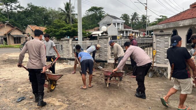 WAY KANAN– Polsek Blambangan Umpu Polres Way Kanan Polda Lampung bersama Babinsa, Santri Ponpes Baitul Muttaqin dan masyarakat bersinergi dalam kegiatan bakti sosial gotong royong di Masjid Baitul Muttaqin Dusun Bedeng Sirap Kampung Negeri Baru Kecamatan Umpu Semenguk Kabupaten Way Kanan. Kamis (19/02/2026)